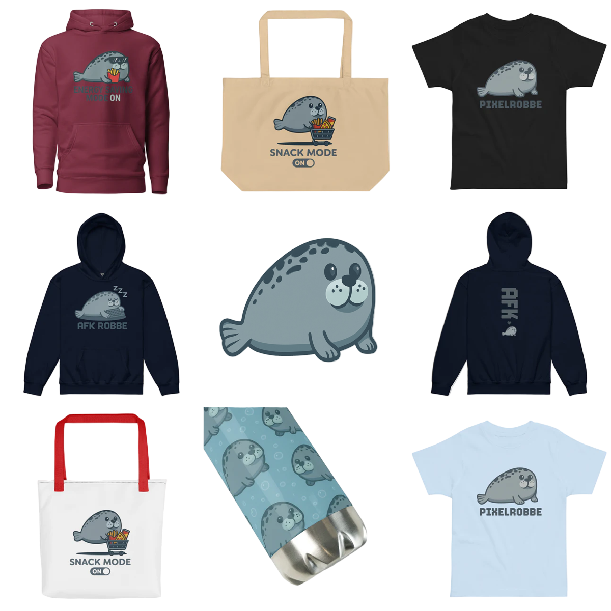 Hier dreht sich alles um die Robbe – frech, verspielt und immer für gute Laune zu haben. Ob coole Shirts, witzige Accessoires oder süßes Merch: Pixelrobbe bringt dir den Robben-Vibe direkt nach Hause.